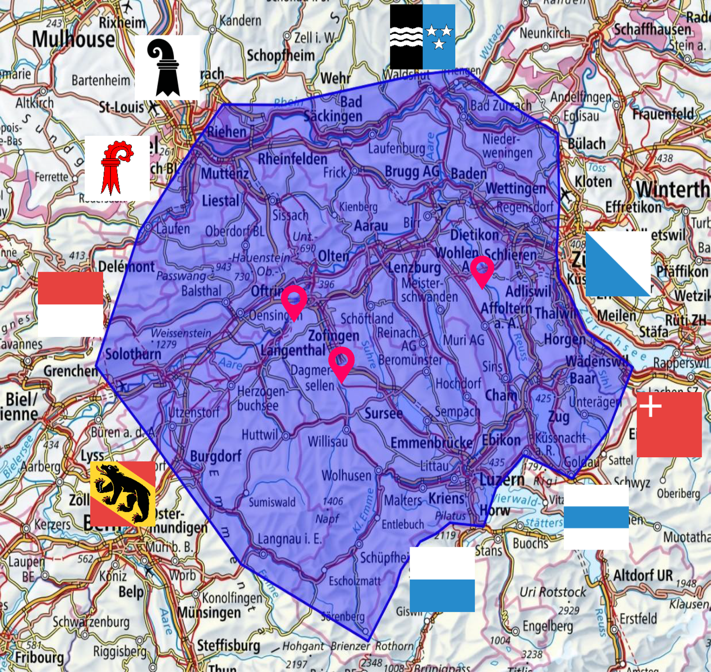 Unser Einsatzgebiet für reguläre Aufträge erstreckt sich über die definierte Region unseres Tagesgeschäfts. Für spezielle Aufträge sind Einsätze in der ganzen Schweiz nach vorgängiger Absprache möglich – transparent und kostenklar. Bei einfachen Schadenbildern bieten wir zudem Teleexpertisen an. Sofern die technische Infrastruktur geeignet ist, sind diese weltweit durchführbar.